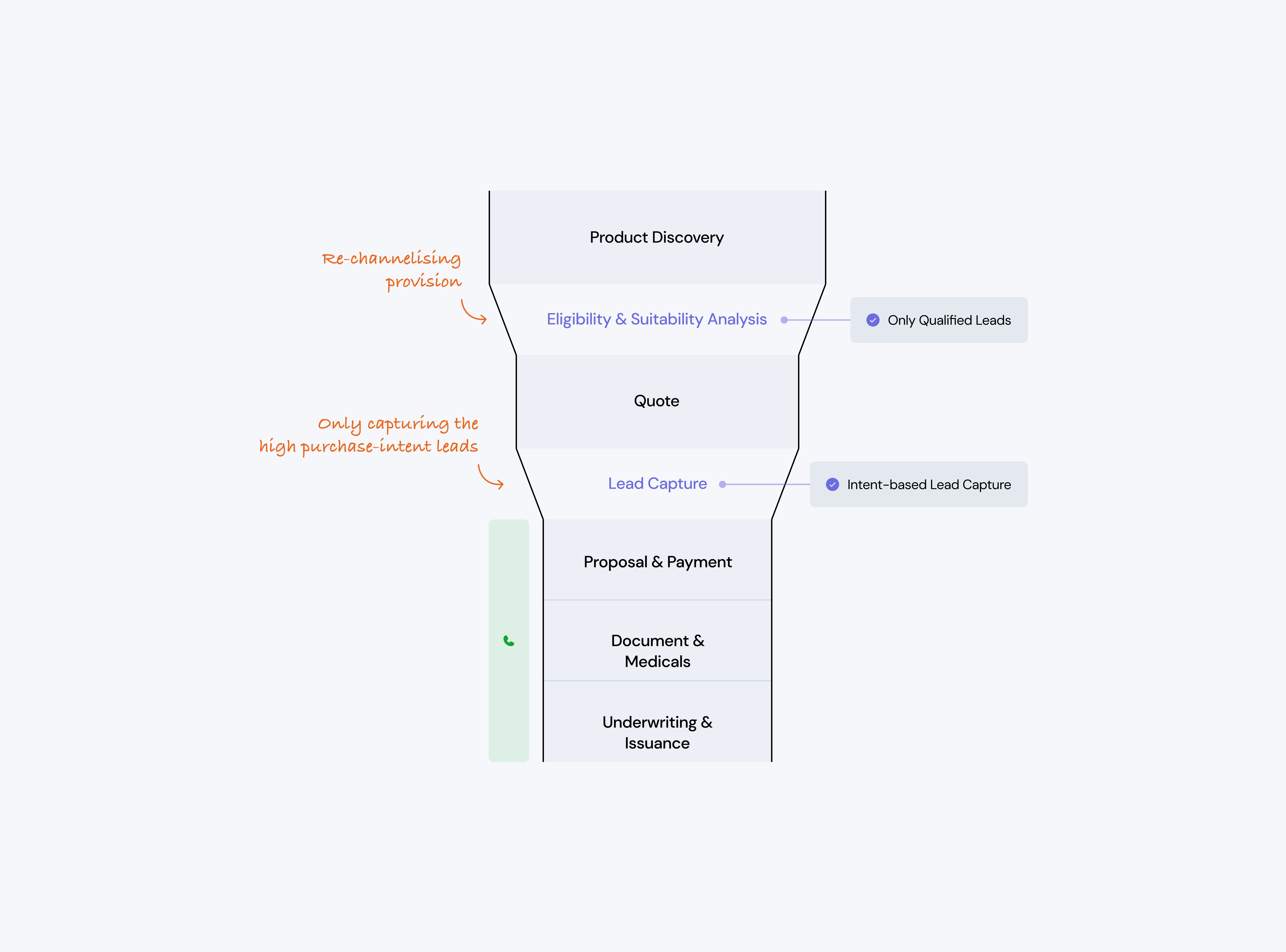 We redesigned the sales funnel with advanced features such as eligibility analysis, suitability analysis, lead