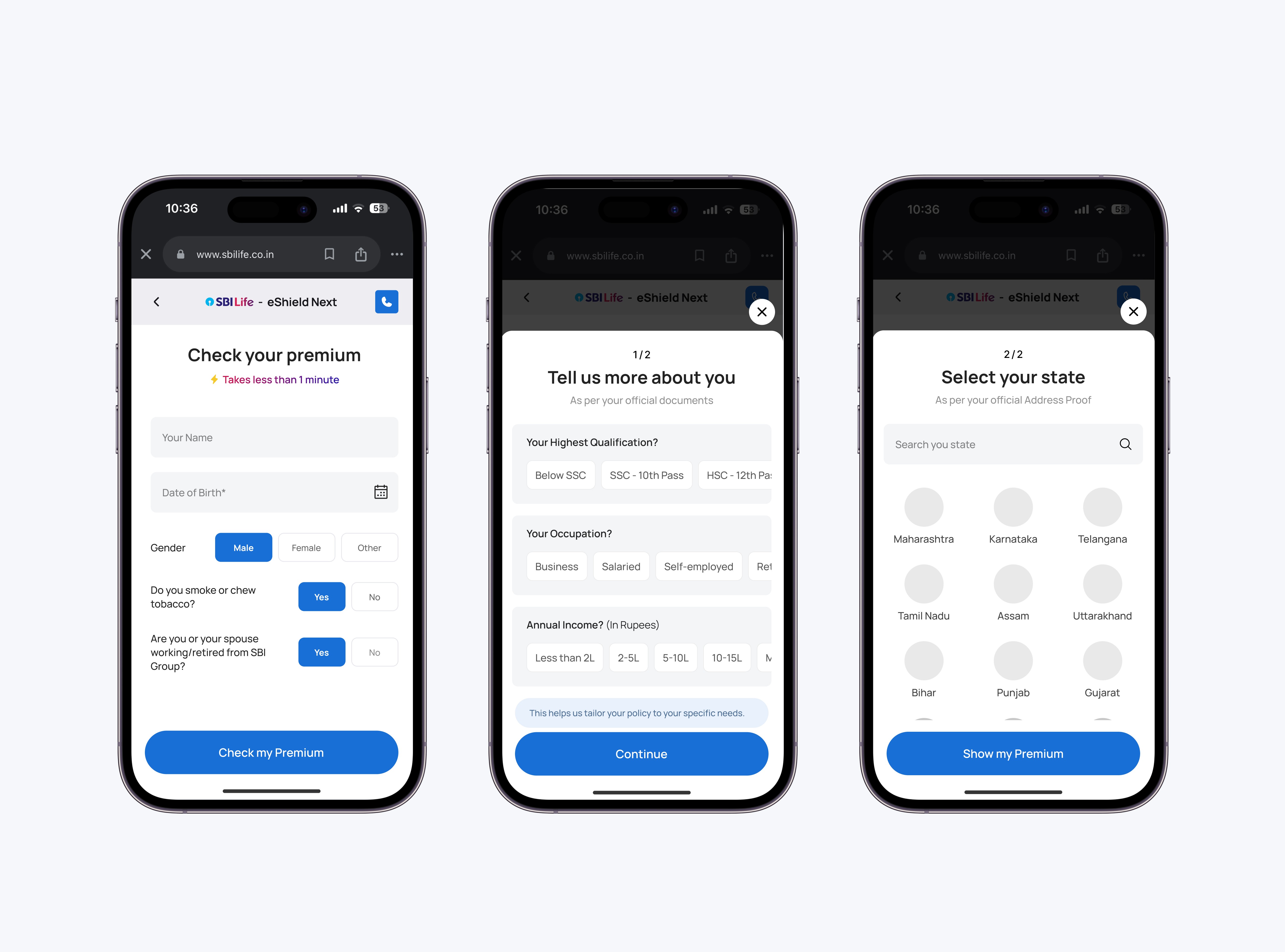 We began with redesigning the purchase flow and built a detailed IA to ensure alignment with SBI Life’s compliance requirements and secure approvals before moving into detailed design.